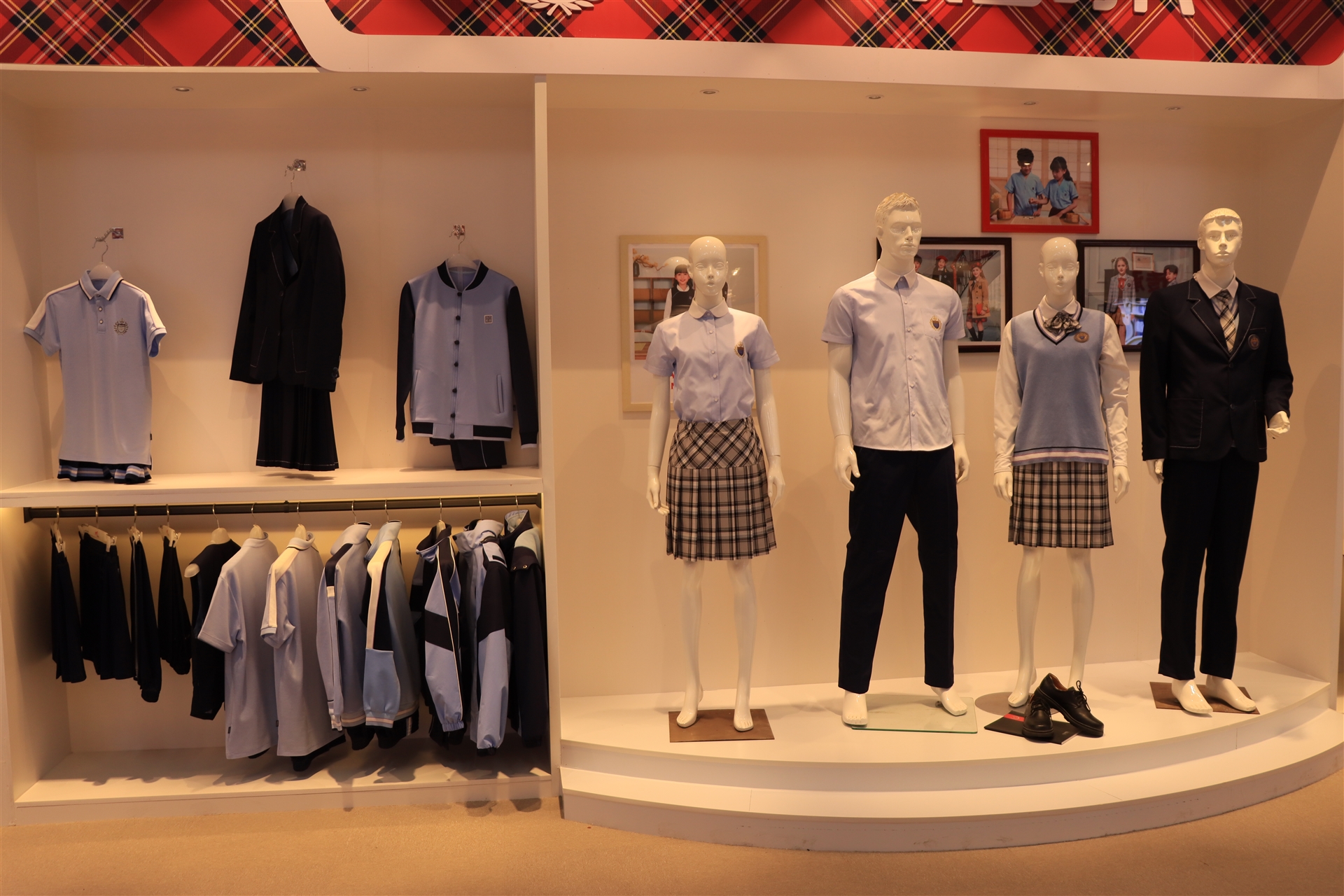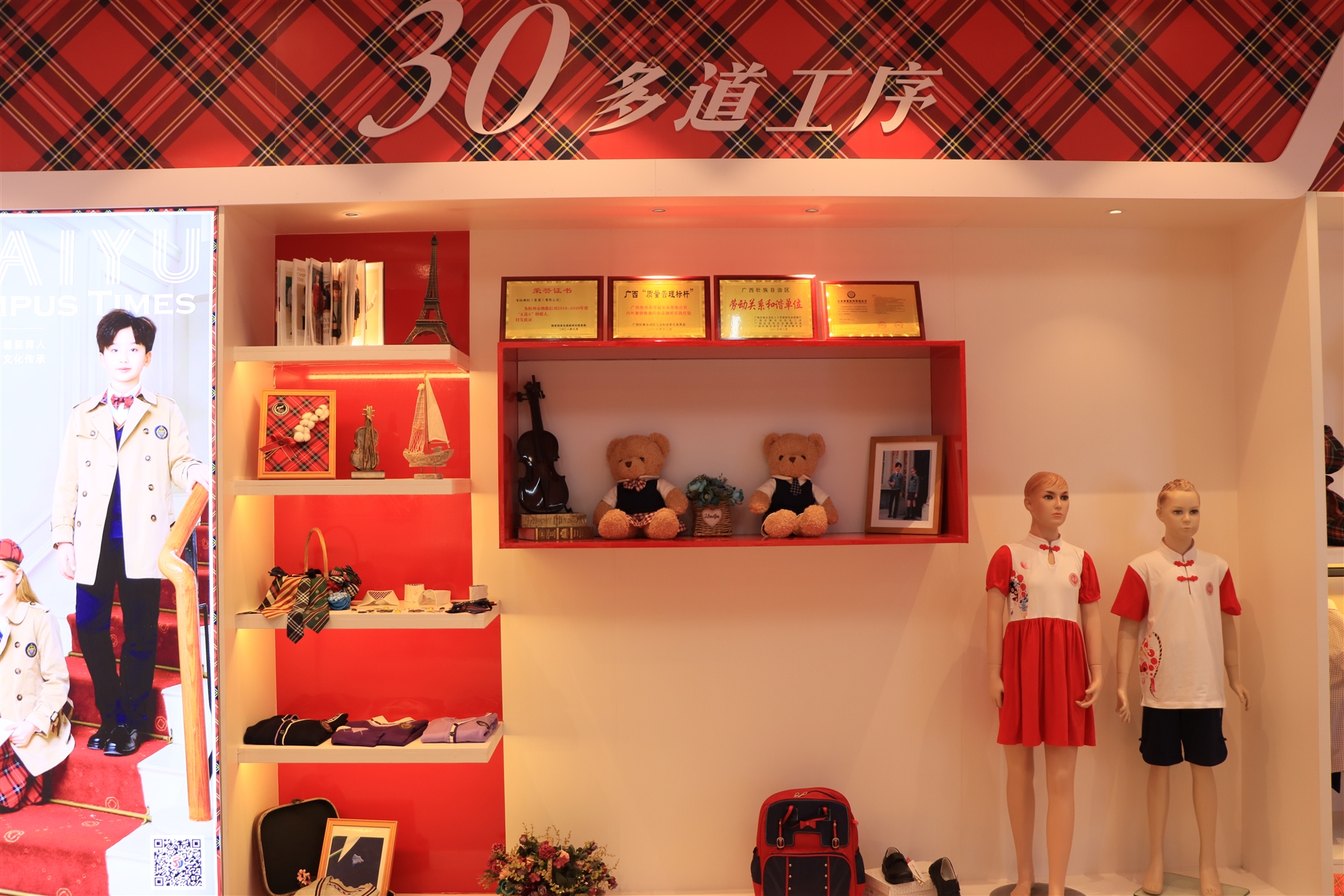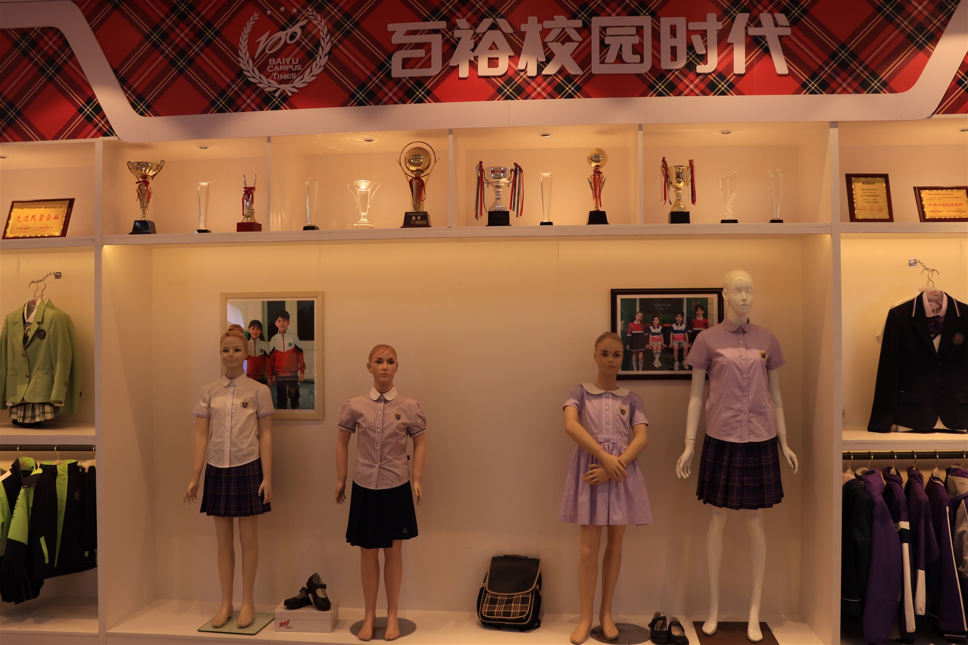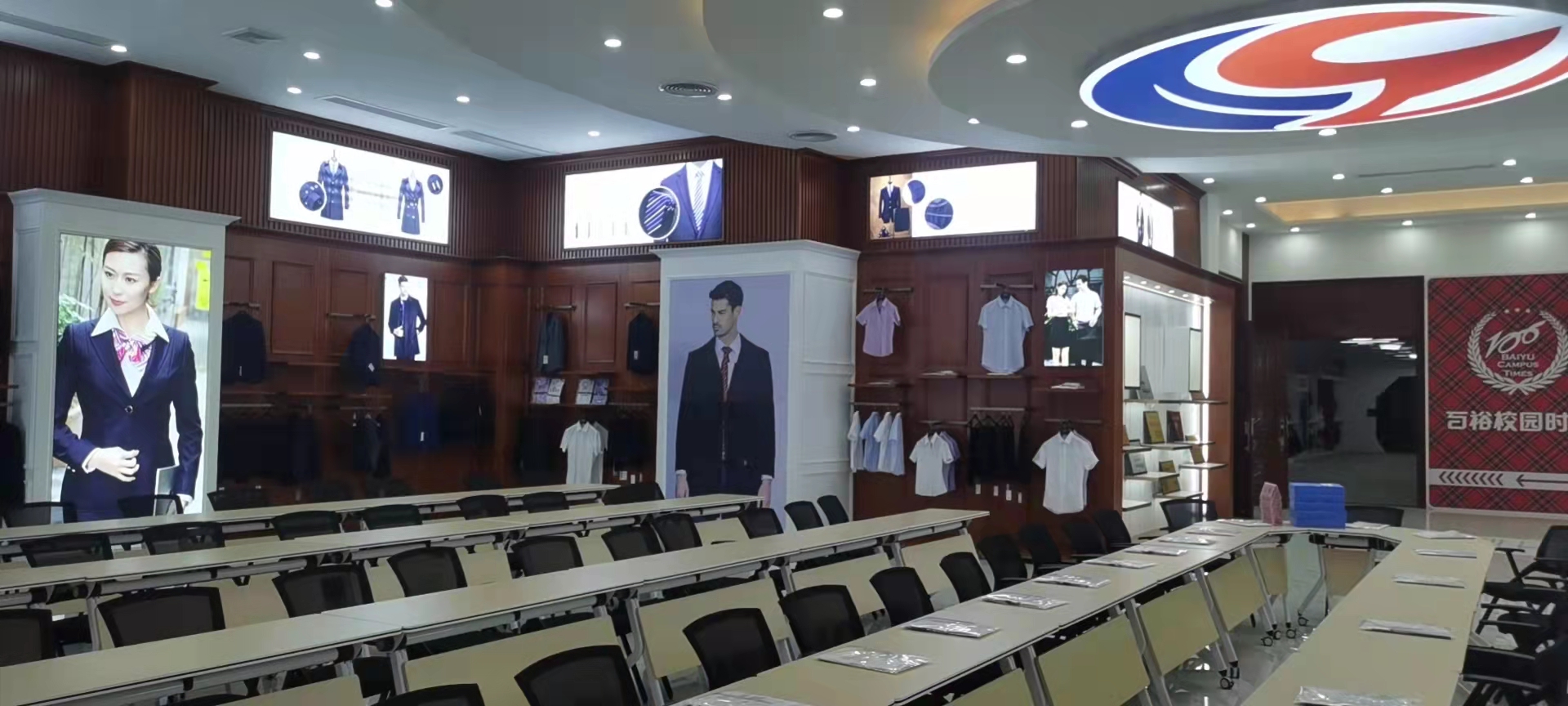 品牌館展示了百裕集團旗下百裕校園時(shí)代、喬派恩、愛(ài)樂(lè )學(xué)等品牌服飾經(jīng)典款,不同的區域裝飾風(fēng)格展現不同的品牌個(gè)性與文化,可滿(mǎn)足靜態(tài)與動(dòng)態(tài)不同形式的展示方式。