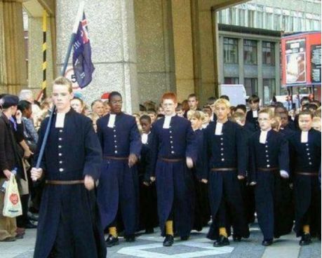 歐洲的校服仍然維持著(zhù)它一直以為低調和貴族的傳統,被譽(yù)為最正統的校服,沿用了多年的皇室制服款式。英國校服款式經(jīng)典、簡(jiǎn)潔大方,中學(xué)生必須穿著(zhù)正統西式校服,男生為正統西裝、正規皮鞋、需要佩戴領(lǐng)帶,女生也是統一西式正統服裝、正規女式皮鞋、必須佩戴領(lǐng)花,不論是?;?、帽徽,無(wú)一不顯示著(zhù)英國人特有的風(fēng)度和氣質(zhì)。也不知是歐洲的學(xué)生更嚴肅還是校方更強硬,他們的態(tài)度似乎是“學(xué)生就要穿得像個(gè)學(xué)生的樣子”。他們對校服的重視程度也不輸給日本,認為校服是培養學(xué)生紀律意識最直接的手段。