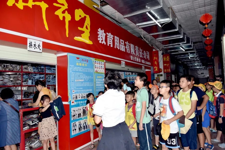 小記者們參觀(guān)了南寧市中小學(xué)學(xué)生裝北湖路的實(shí)體專(zhuān)賣(mài)店,通過(guò)現場(chǎng)認識“新希望”店面形象、了解學(xué)生裝購買(mǎi)形式、學(xué)生裝款式等知識。