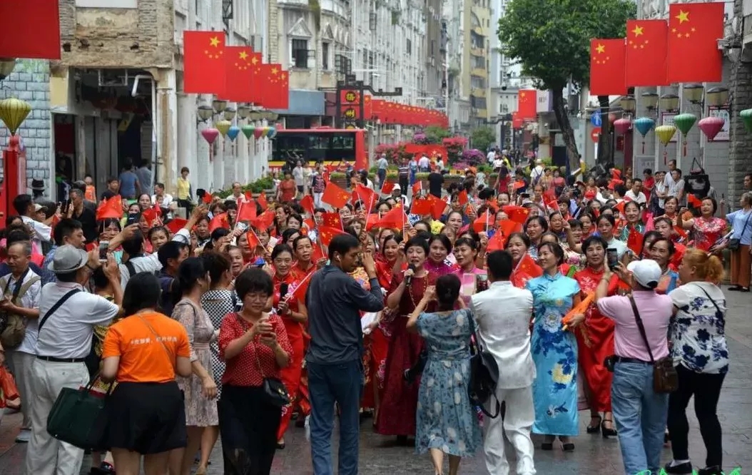 為慶祝新中國成立70周年,配合全球(中國)旗袍總會(huì )發(fā)起的“百城千街萬(wàn)人旗袍秀”暨“創(chuàng )吉尼斯世界紀錄活動(dòng)”,向全世界展示中華傳統文化和東方女性之美,梧州市旗袍協(xié)會(huì )、梧州市華服文化促進(jìn)會(huì )、梧州市老年開(kāi)放大學(xué)藝術(shù)團在梧州市婦聯(lián)的指導下,在廣西百裕集團的冠名支持下,于10月7日上午9時(shí)走進(jìn)騎樓城,開(kāi)展“百城千街萬(wàn)人旗袍秀”暨“創(chuàng )吉尼斯世界紀錄”梧州站展演活動(dòng)。