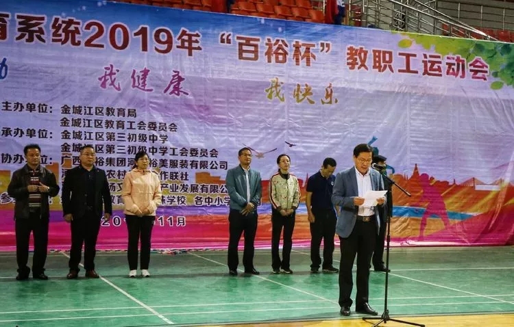 為促進(jìn)全民健身運動(dòng)廣泛開(kāi)展,活躍教育系統教職工文體生活,營(yíng)造團結、和諧、向上的教職工氛圍,展示教育系統干部職工良好精神風(fēng)貌,2019年11月22日,河池市金城江區教育系統"百裕杯"教職工運動(dòng)會(huì )在河池市金城江體育館舉行,活動(dòng)為期三天