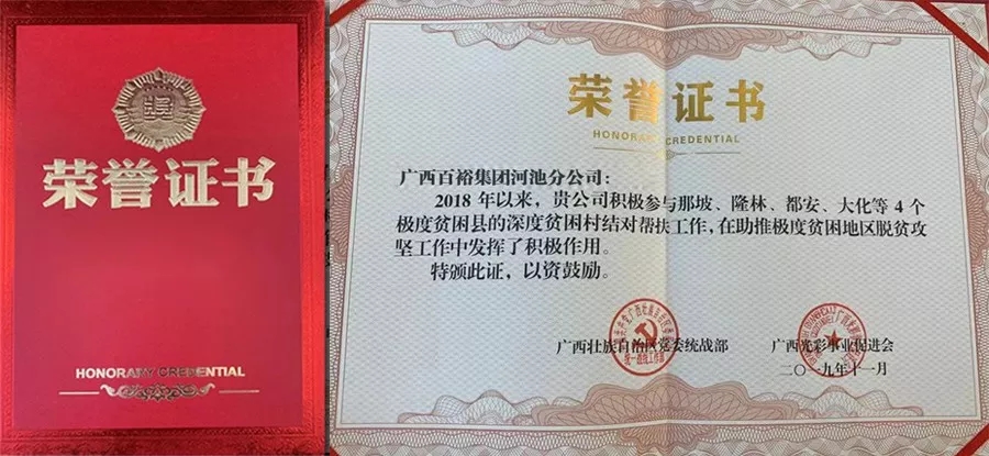 百裕集團河池分公司作為環(huán)江馴樂(lè )鄉鎮北村結對幫扶企業(yè),在扶貧攻堅工作中突出貢獻受到表?yè)P。