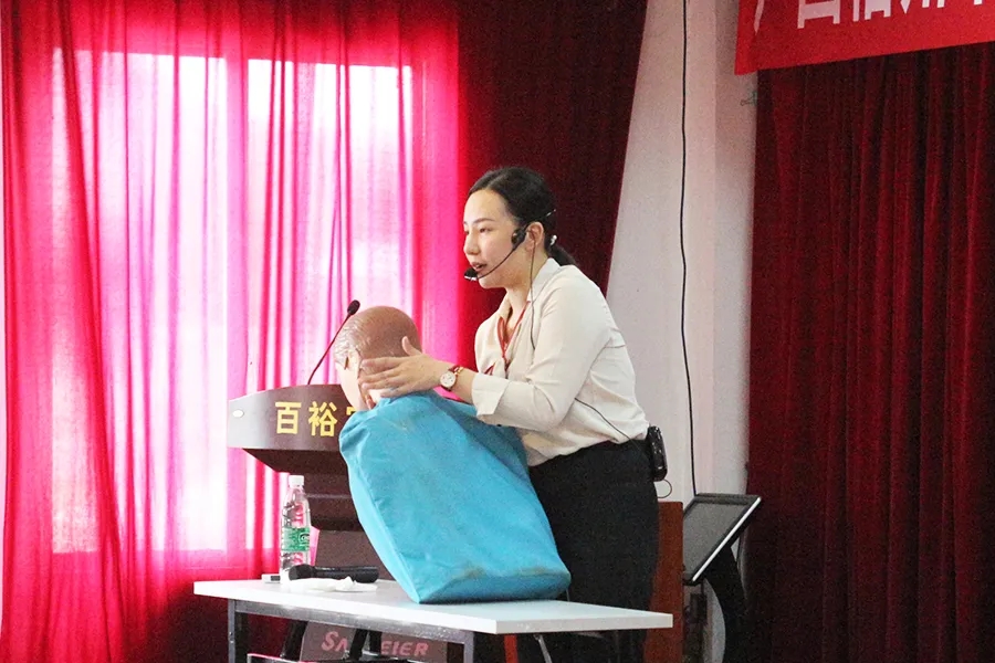 講座上,百裕實(shí)業(yè)總經(jīng)理曾晏來(lái)表示:“公共安全職業(yè)健康專(zhuān)題講座,是“安全生產(chǎn)月”系列活動(dòng)之一。目前,公司積極開(kāi)展形式多樣、內容豐富的 “安全生產(chǎn)月”系列活動(dòng),希望通過(guò)這次活動(dòng),進(jìn)一步增強員工們的自我保護、現場(chǎng)救護和自我保健能力 ,最大限度降低突發(fā)性傷害事件造成的危害,養成良好的健康生活習慣,提高員工職業(yè)健康意識,增強企業(yè)職業(yè)健康管理。本次培訓是比較規范的一些救護方法,請同事們認真聽(tīng),細心觀(guān)察老師的操作方法。”