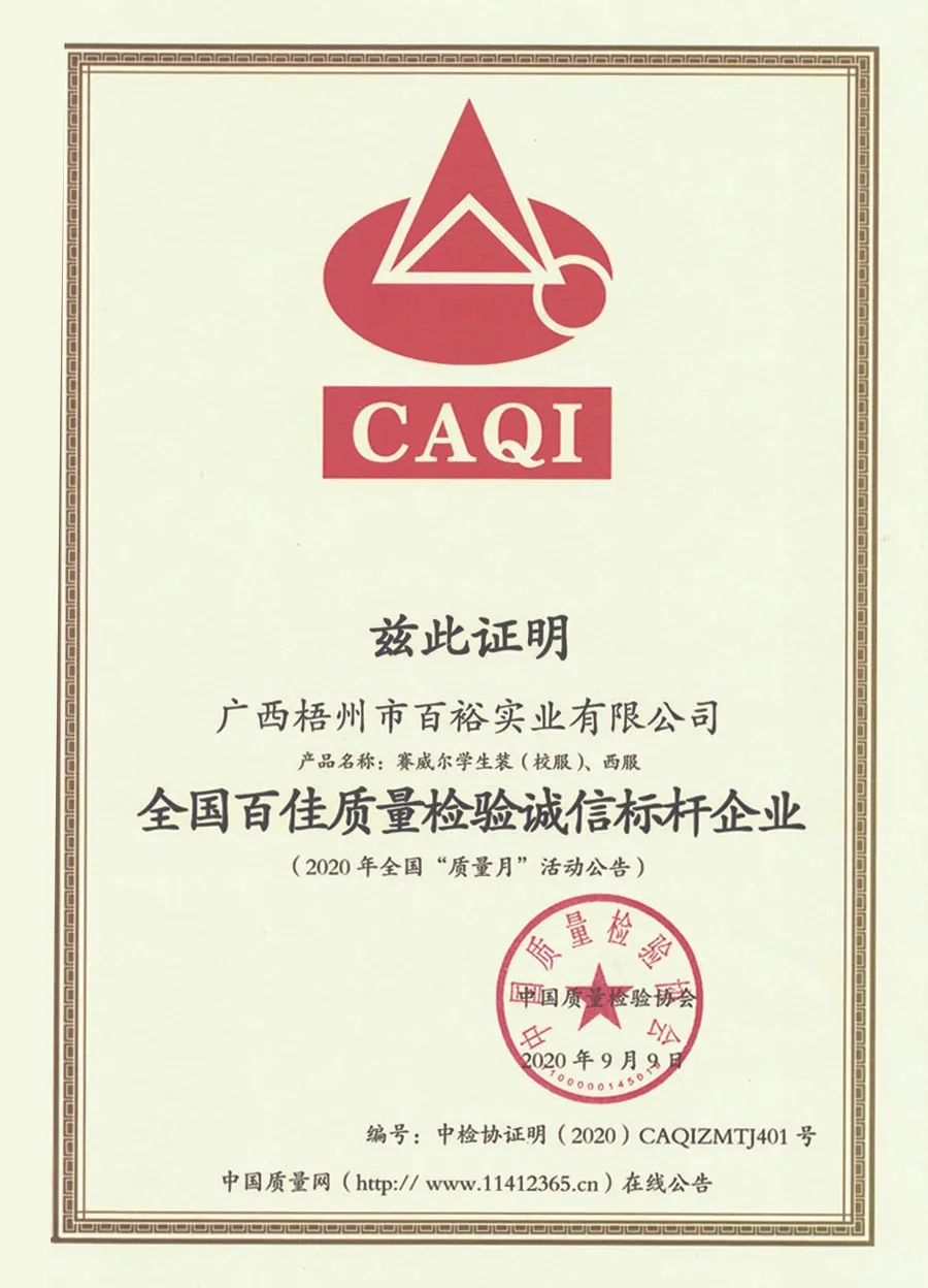 9月9日,百裕集團產(chǎn)品憑借卓越的產(chǎn)品質(zhì)量和生產(chǎn)技術(shù),贏(yíng)得中國質(zhì)量檢驗協(xié)會(huì )的認可,榮獲“全國百佳質(zhì)量檢驗誠信標桿企業(yè)”與“全國質(zhì)量誠信標桿企業(yè)”榮譽(yù)稱(chēng)號。