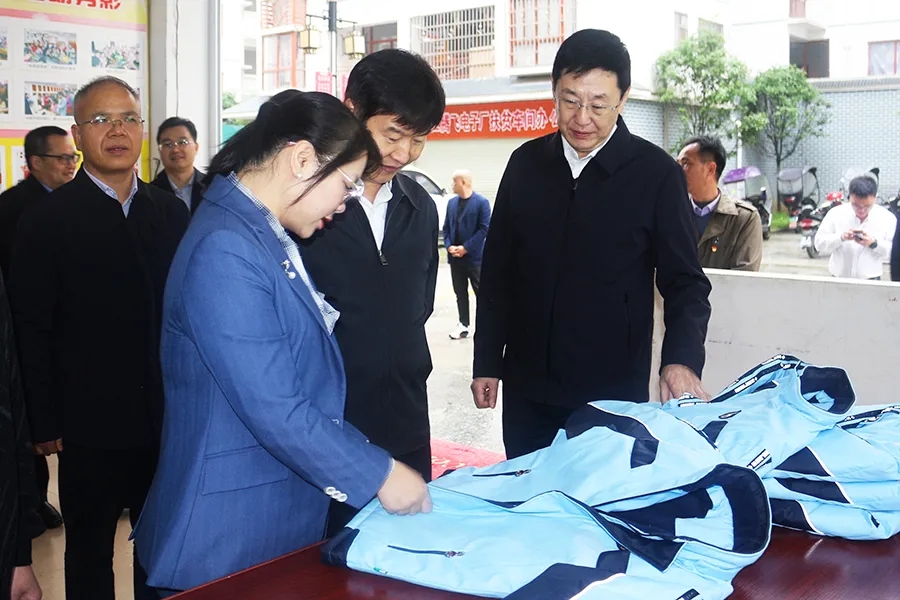 在參觀(guān)展示廳的過(guò)程中,市場(chǎng)總監曾凱蘭向領(lǐng)導們詳細介紹了百裕校園服飾特點(diǎn)。環(huán)江是毛南、壯、漢、苗、瑤、水、仫佬族、侗、布依等少數民族集中地,是全國惟一的毛南族自治縣,擁有絢爛多彩的少數民族文化背景,百裕集團在服務(wù)當地學(xué)校學(xué)子的同時(shí),充分保留民族文化特色,將文化元素融入到學(xué)生服飾當中,傳承民族文化。對于此舉,劉小明給予了認可與極大的鼓勵。