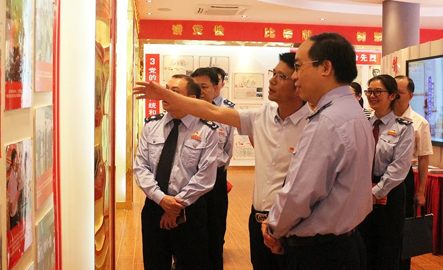 由稅務(wù)局黨組書(shū)記、局長(cháng)陳懿帶隊的交流團在百裕黨支部書(shū)記曾晏來(lái)的帶領(lǐng)下,參觀(guān)黨建中心、黨群活動(dòng)室,了解我公司黨建工作。