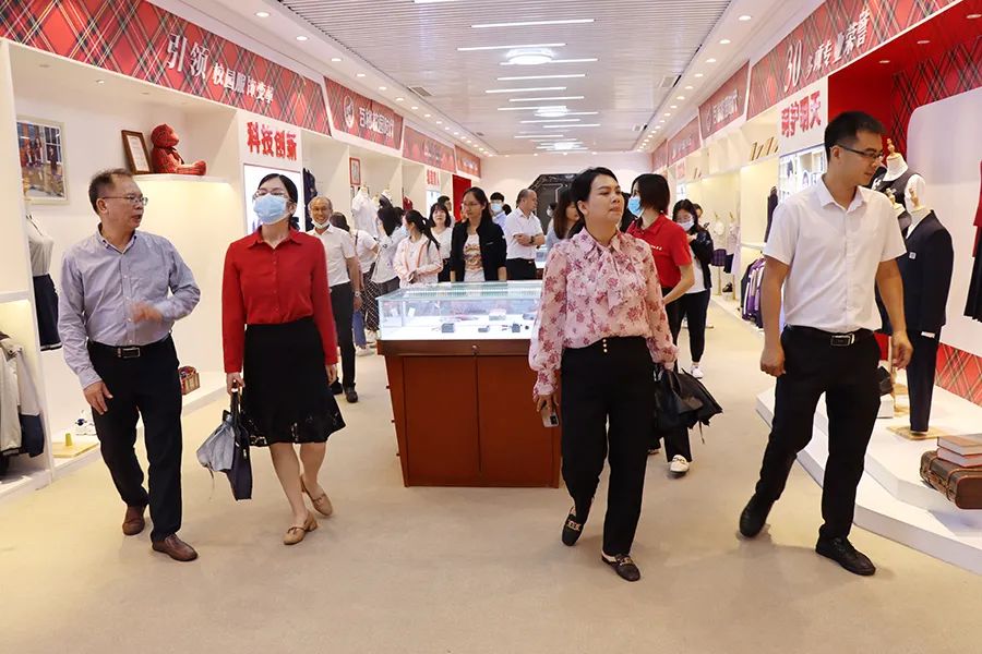 在服飾品牌展示館內,各系列個(gè)性化的服飾引來(lái)學(xué)員們的驚嘆與贊許,同時(shí)對公司生產(chǎn)的服裝融入民族傳統元素的理念及生產(chǎn)工藝技術(shù)表示贊賞與肯定。