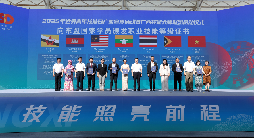 自治區主會(huì )場(chǎng)活動(dòng)內容豐富,并首次融入東盟元素,邀請文萊、柬埔寨、馬來(lái)西亞、緬甸、泰國、越南、東帝汶等國家的官員、學(xué)員參與其中,主要包括啟動(dòng)儀式、技能展示和技能大師聯(lián)盟展示交流三個(gè)部分。