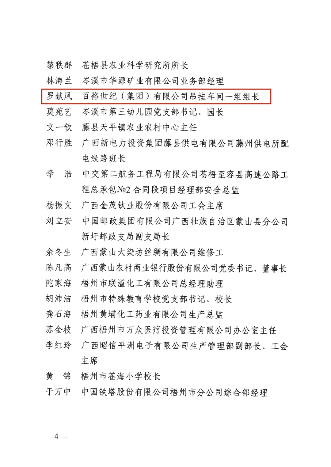 4月26日,梧州市總工會(huì )印發(fā)《梧州市總工會(huì )關(guān)于表?yè)P2024年梧州五一勞動(dòng)獎和梧州工人先鋒號的通報》,百裕世紀(集團)有限公司羅獻鳳同志榮獲2024年“梧州五一勞動(dòng)獎?wù)隆薄?/span>