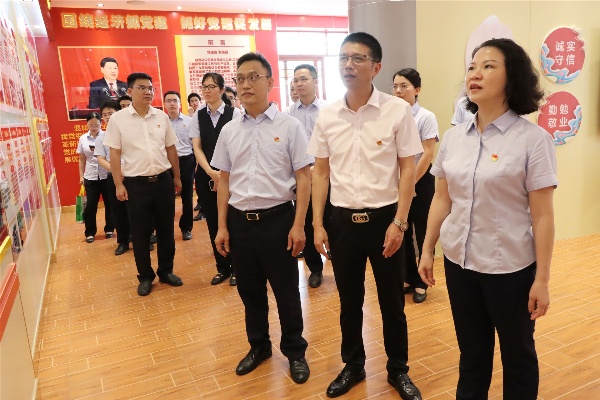 百裕世紀(集團)有限公司總經(jīng)理曾晏來(lái),岑溪農商銀行黨委委員、紀委書(shū)記、監事長(cháng)陸海芝,黨委委員、副行長(cháng)陳美強帶領(lǐng)雙方單位近50名黨員及青年員工代表參加本次活動(dòng)。