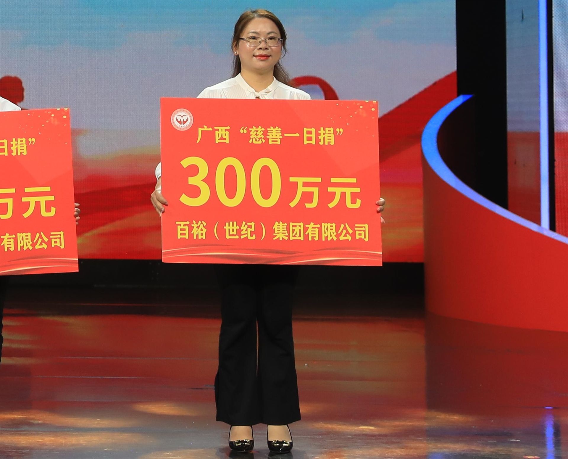百裕世紀(集團)有限公司市場(chǎng)總監曾凱蘭代表百裕集團向廣西慈善總會(huì )舉牌捐款300萬(wàn)元,以實(shí)際行動(dòng)弘揚中華民族傳統美德,弘揚大愛(ài)無(wú)疆的奉獻精神,詮釋新時(shí)代民營(yíng)企業(yè)的使命擔當,為慈善事業(yè)貢獻自己的力量。