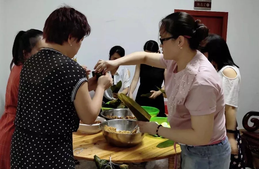 人多力量大,活動(dòng)進(jìn)行不一會(huì )兒,各種形狀的粽子開(kāi)始成形,有三角的、四角的、長(cháng)方形的、扁平狀的.....,還有很多種地方特色文化、味道的粽子。員工們相互交流、學(xué)習。
