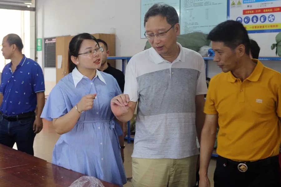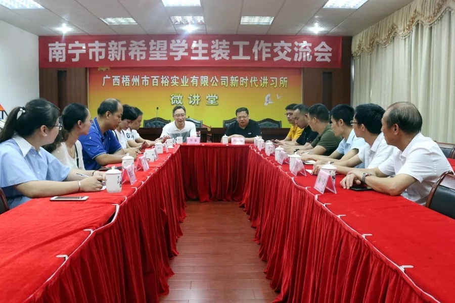 7月4日,南寧市新希望教育用品有限責任公司總經(jīng)理勞豪一行4人到百裕實(shí)業(yè)生產(chǎn)基地,了解學(xué)生裝庫存情況以及監督產(chǎn)品質(zhì)量。百裕集團董事長(cháng)許曲煌、生產(chǎn)中心總經(jīng)理曾晏來(lái)等相關(guān)公司人員陪同考察。