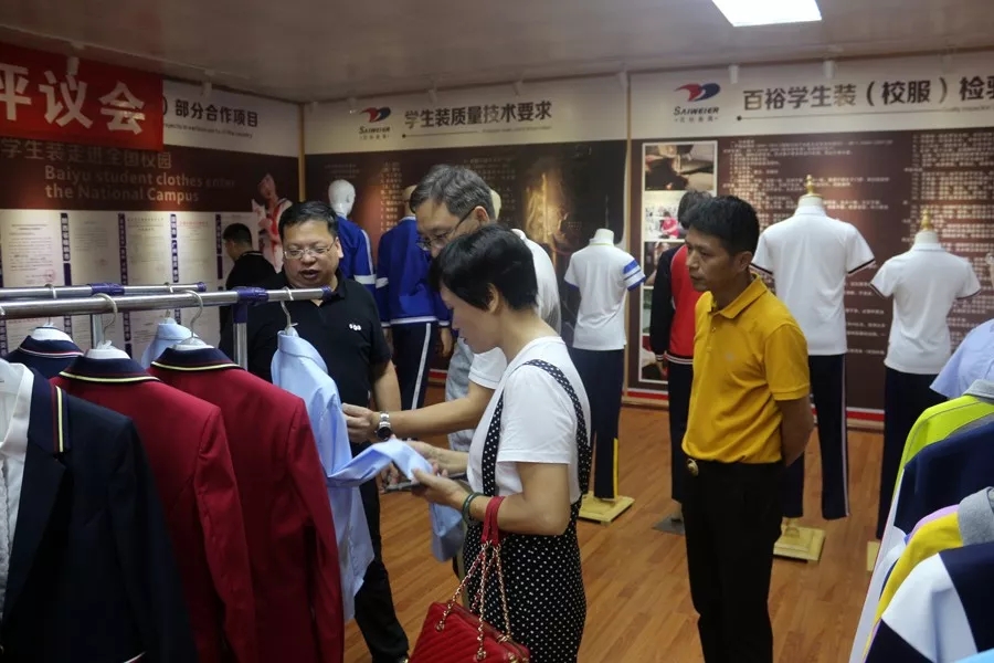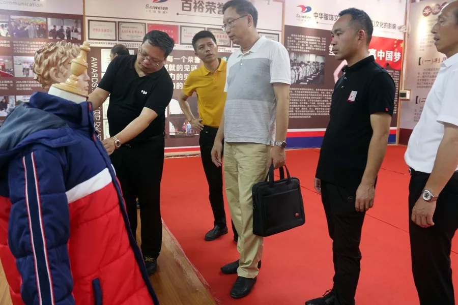 隨即新希望公司參觀(guān)了“全國學(xué)生裝文化展示中心”,對展示廳里面的各類(lèi)型服裝進(jìn)行指導。并對百裕引進(jìn)的先進(jìn)的面料、輔料等表示認可。