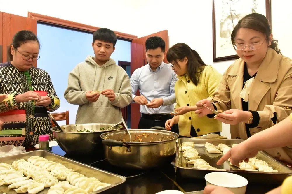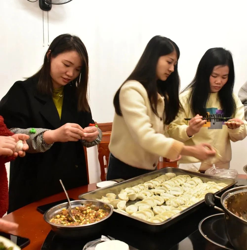 餐廳里歡聲笑語(yǔ),熱鬧非凡,大家邊包餃子邊拉家常,相互觀(guān)摩學(xué)習,加深了彼此的交流,拉近了彼此的距離,增進(jìn)了彼此的感情。