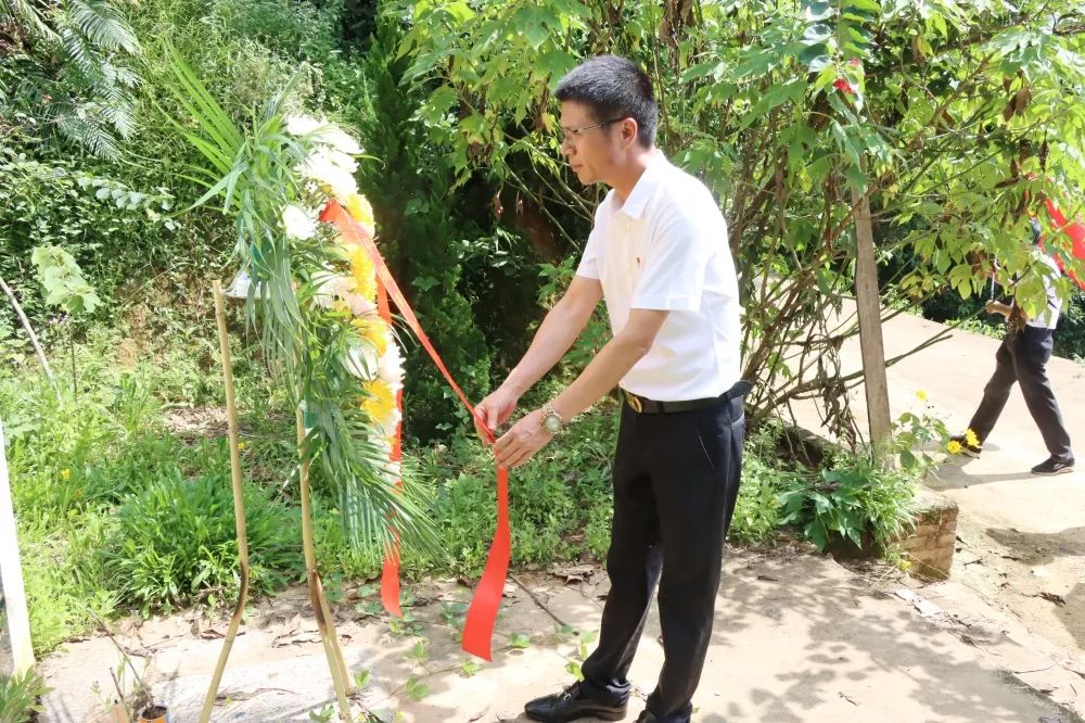 最后,黨員同志們來(lái)到了抗日英雄陳濟桓烈士的紀念碑前,深情緬懷革命先烈。大家在烈士塔前重溫入黨誓詞,牢記入黨初心,爭做優(yōu)秀共產(chǎn)黨員。全體黨員在黨支部書(shū)記曾晏來(lái)的帶領(lǐng)下,肅立三鞠躬,為烈士們獻花籃,以表達對烈士們的思念,緬懷革命烈士們的不朽功勛。