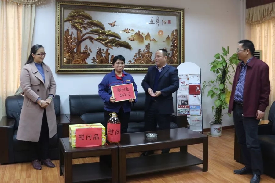 企業(yè)的發(fā)展離不開(kāi)基層職工的辛勤付出,同月29日,廣西梧州市百裕實(shí)業(yè)有限公司常務(wù)副總經(jīng)理謝移植、岑溪生產(chǎn)廠(chǎng)廠(chǎng)長(cháng)王平志一行先后走訪(fǎng)黃旭群等困難職工,為職工們送去春節禮品,并轉達了公司對職工的深切問(wèn)候和美好祝福。