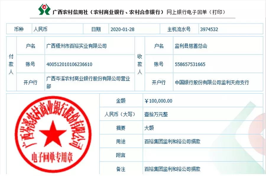 (向監利縣慈善總會(huì )捐款壹拾萬(wàn)元)