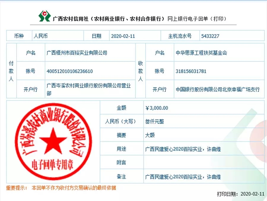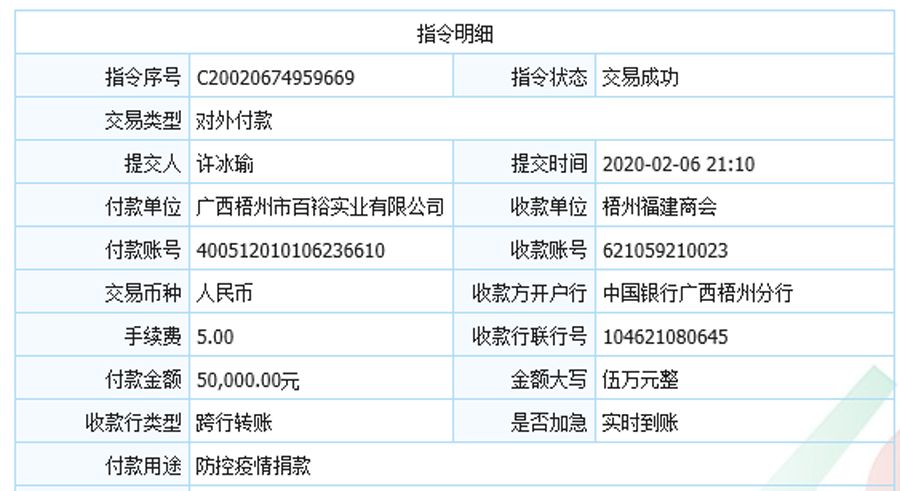 (向梧州福建商會(huì )捐款伍萬(wàn)元)