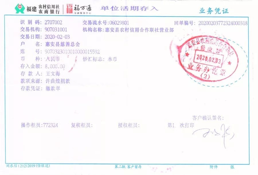 (向惠安縣慈善總會(huì )捐贈8000元)