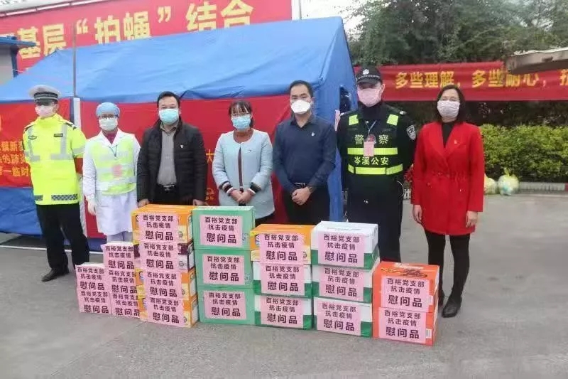2月11日下午,在戰“疫”關(guān)鍵時(shí)期,百裕實(shí)業(yè)黨支部黨員干部?jì)炔磕季杷媒?jīng)費共計2270元用于采購物資,前往岑溪市探花和古塘高速路口一線(xiàn)執勤點(diǎn),為戰“疫”執勤的交警和醫務(wù)人員送去一批慰問(wèn)物資,希望能為抗擊疫情貢獻一份力量。